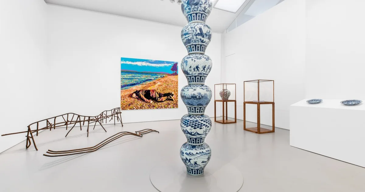 In mostra per la prima volta l’installazione Whitewashed Remnants of History of the State of Emerging Future Works. Per la quale l’artista ha dipinto su oggetti d’antiquariato di provenienza locale, tra cui sedie e vasi. È esposta anche FUCK. (2024), per la quale Ai ha cucito bottoni di metallo su quattro barelle militari per formare l’imprecazione che dà il titolo all’opera. Quest’opera è stata il fulcro della sua mostra alla Lisson Gallery di Londra lo scorso anno.