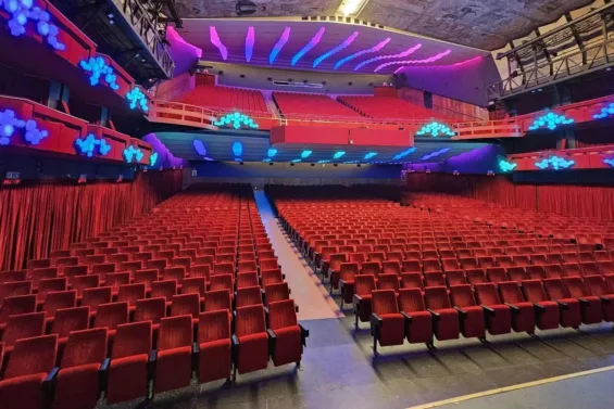 Qui la parola d’ordine è asimettria, linee imprevedibili e una scena che scende e si insinua nella platea.