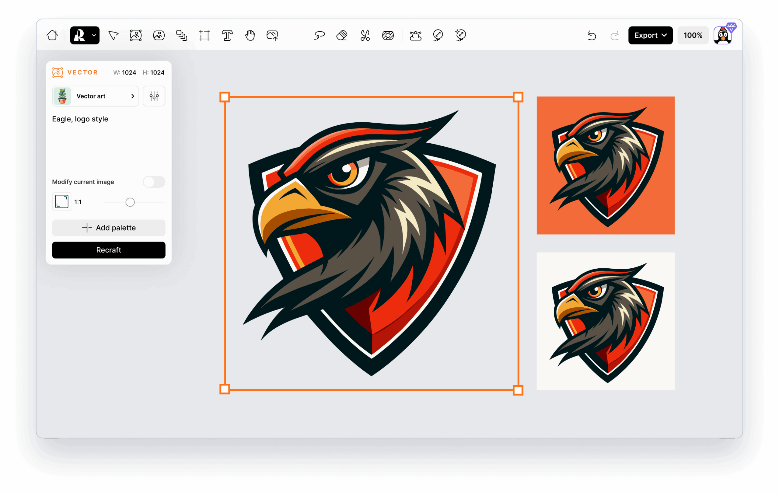 La funzionalità mockup di Recraft ti consente di posizionare loghi, illustrazioni o altri design sulle foto del tuo prodotto: è perfetta per creare contenuti per i social media per la tua attività secondaria.